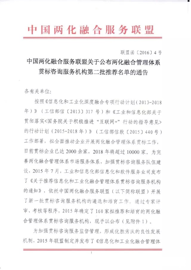 以下為兩化融合咨詢服務平臺公告: